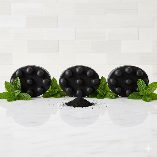 ✨ ¡Descubre el poder de la naturaleza para una piel radiante! ✨ Precious Lucy te trae este increíble jabón artesanal de carbón activado y menta en formato masajeador, tu aliado perfecto para una piel más sana y luminosa.